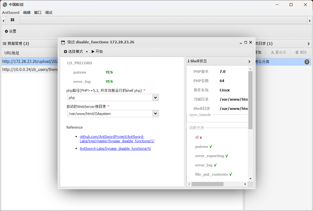 有 disable_funtion 蚂蚁的剑插件绕过下。