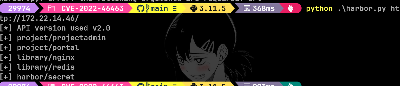 1 | python .\harbor.py http://172.22.14.46/ --dump harbor/secret --v2 |